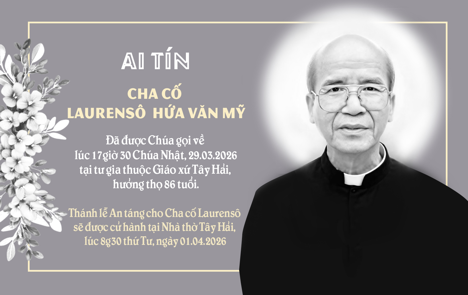 Thánh lễ An táng cho Cha cố Laurensô sẽ được cử hành tại Nhà thờ Tây Hải, lúc 8g30 thứ Tư, ngày 01.04.2026.
