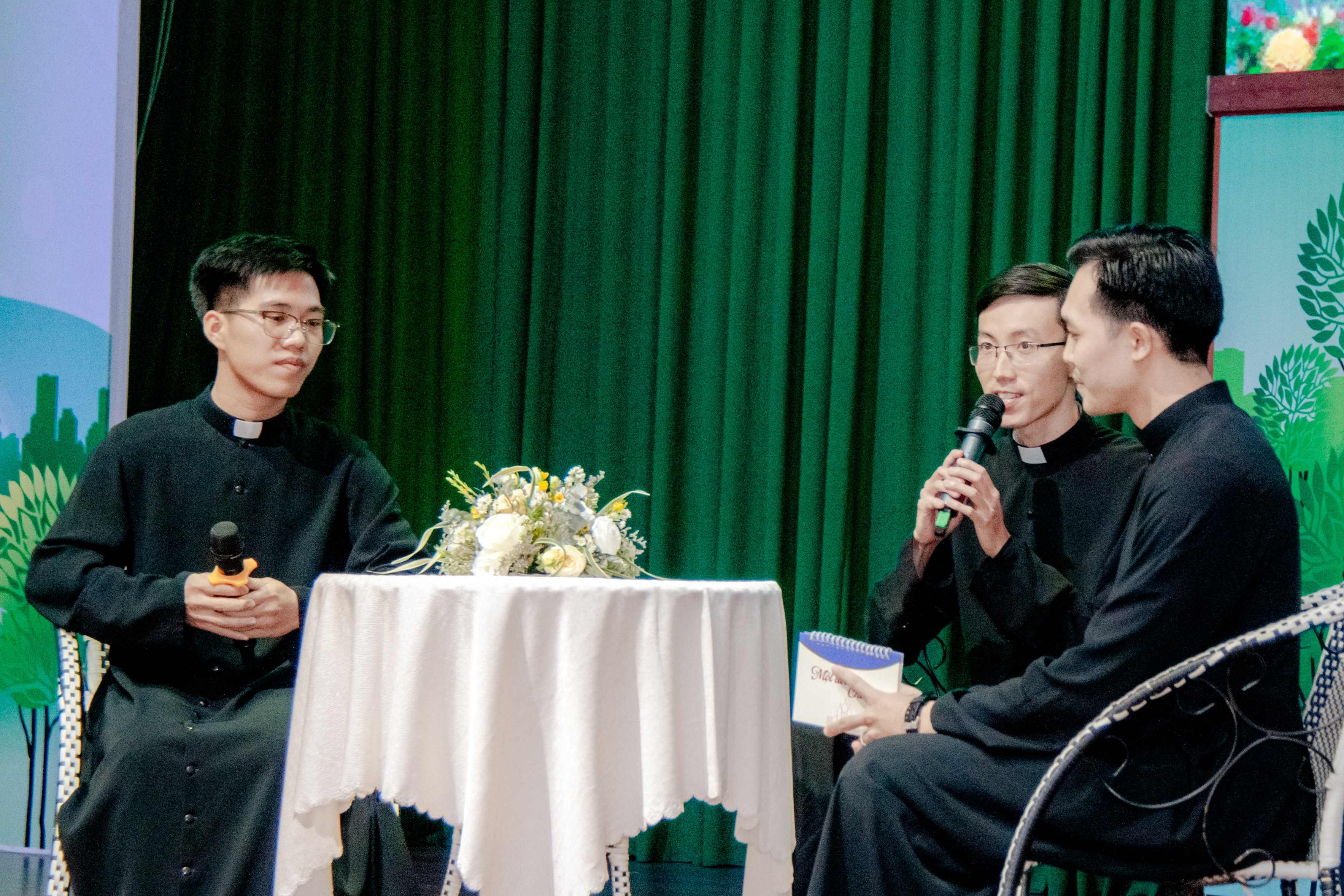 Phần lắng đọng nhất của buổi gặp gỡ là những lời tự sự của các thầy đại diện. Thầy Toàn (lớp Triết II) đã khiến cả hội trường nghẹn ngào khi kể về đôi vai gầy của cha và đôi bàn tay đầy vết sẹo của mẹ nơi vùng quê nghèo miền Bắc. Thầy xúc động thưa: "Con không thể mang tiền về cho ba mẹ như bao người con khác, nhưng con xin dâng mỗi ngày trong đời sống này... như món quà lớn nhất con có thể trao". Thầy Dương (lớp Thần III) cũng chia sẻ về kỷ niệm giờ kinh tối gia đình – nơi đã ươm mầm cho ý hướng đi tu của thầy.