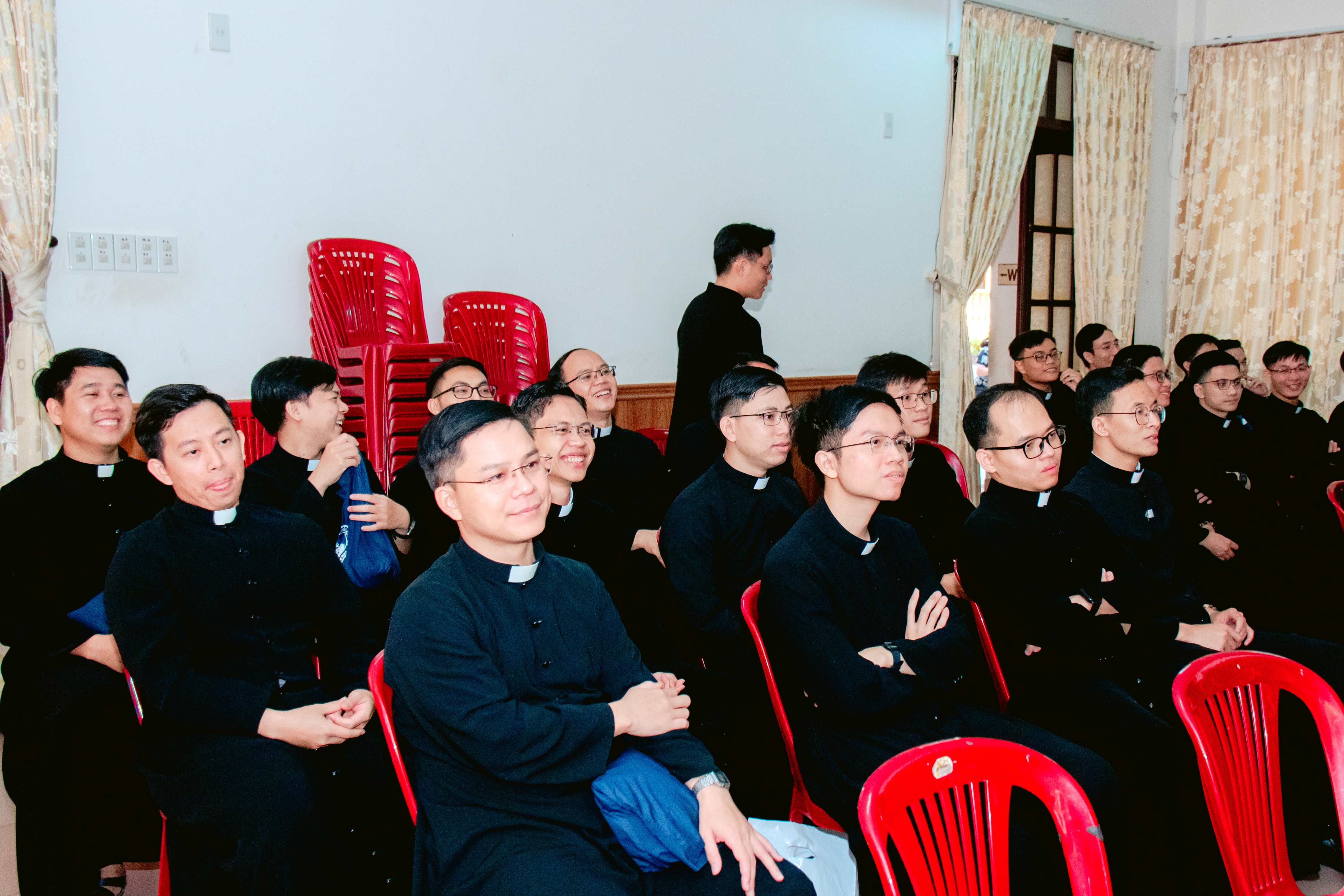 Ngay từ sớm, khuôn viên ĐCV đã rộn ràng tiếng hát và những tràng pháo tay đón chào quý ông bà cố. Trong phần giao lưu đầu giờ, bầu khí trở nên ấm áp khi những người cha, người mẹ chia sẻ về hành trình dâng con cho Chúa. Một bà cố đến từ Giáo phận Bắc Ninh, dù đường xá xa xôi, vẫn xúc động chia sẻ: "Con đã dâng cho Chúa thì Chúa muốn như thế nào là quyền của Chúa, Chúa mang đi đâu cũng được". Một ông cố khác đến từ giáo xứ Tân Bình thì bày tỏ ước mong duy nhất là các thầy được các Cha dạy dỗ để "luôn luôn theo Chúa cho đến cùng". Đặc biệt, lời khẳng định của một phụ huynh: "Thầy là tài sản quý nhất của nhà con" đã chạm đến trái tim của tất cả mọi người hiện diện.