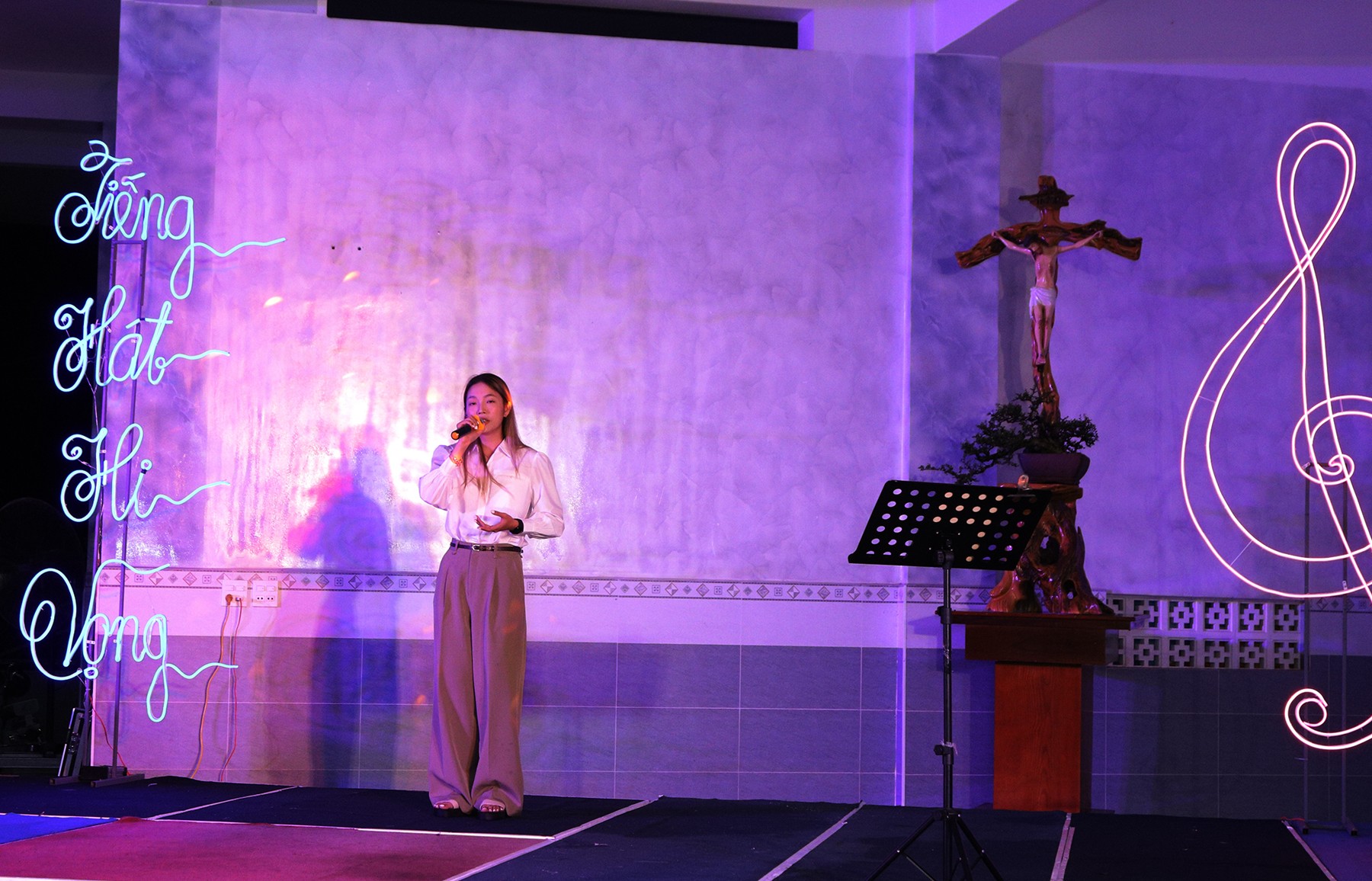 Trong bầu khí hân hoan của cộng đoàn dân Chúa, tối Chúa Nhật ngày 07 tháng 9 năm 2025, tại khuôn viên Giáo xứ Tân Xuân đã diễn ra chương trình Thánh ca đặc biệt mang chủ đề “Tiếng Hát Hy Vọng”. Đây không chỉ là một buổi trình diễn âm nhạc, nhưng còn là lời cầu nguyện bằng âm thanh và giai điệu, để mọi người cùng dâng lên Thiên Chúa lời ca cảm tạ và khẩn xin cho một thế giới chan hòa tình yêu.
