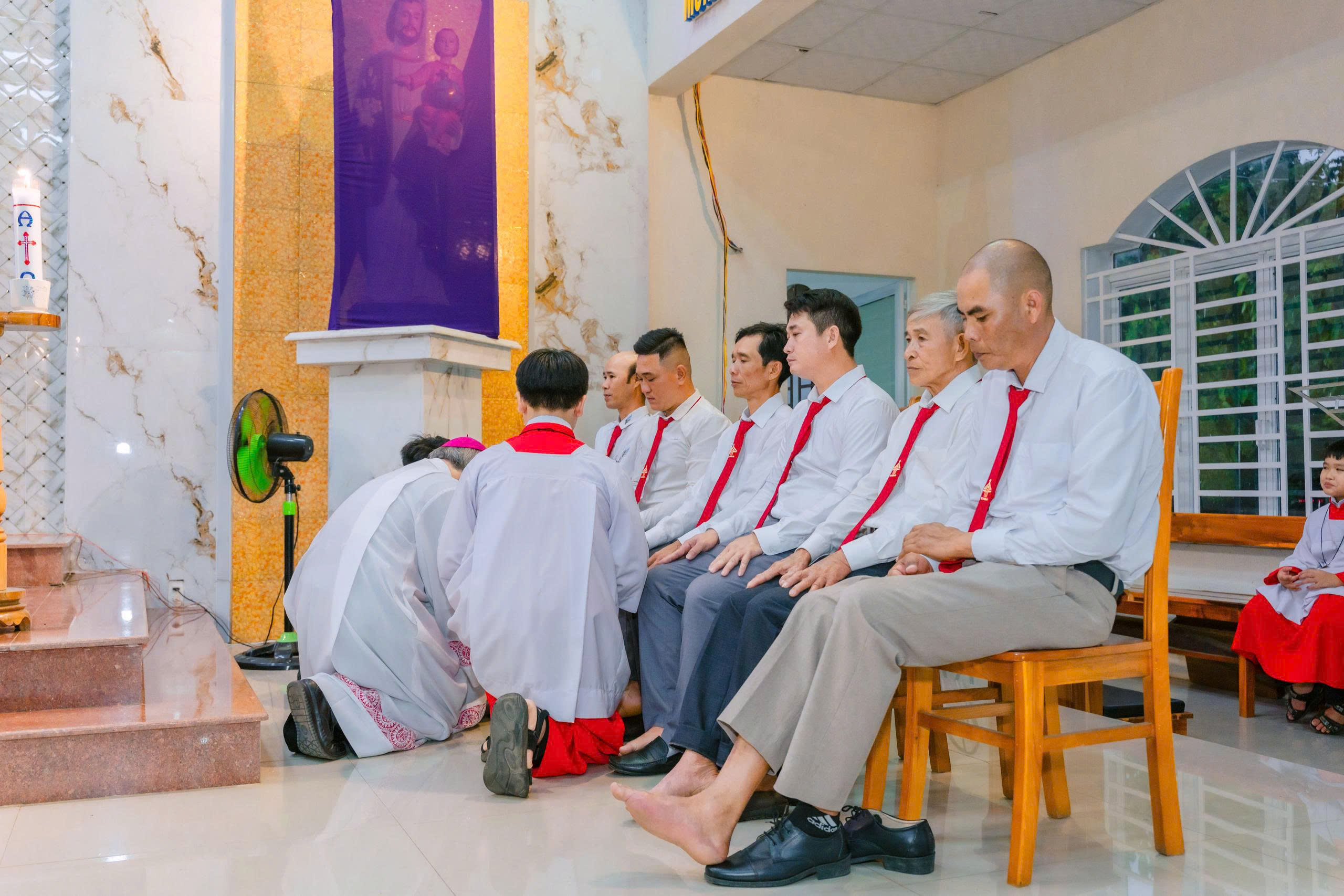 Sau bài giảng, Đức cha đã cử hành nghi thức rửa chân, tái hiện cử chỉ yêu thương và khiêm hạ của Chúa Giêsu trong Bữa Tiệc Ly. Qua đó, cộng đoàn được mời gọi bước vào chiều sâu của mầu nhiệm phục vụ và hiến trao.