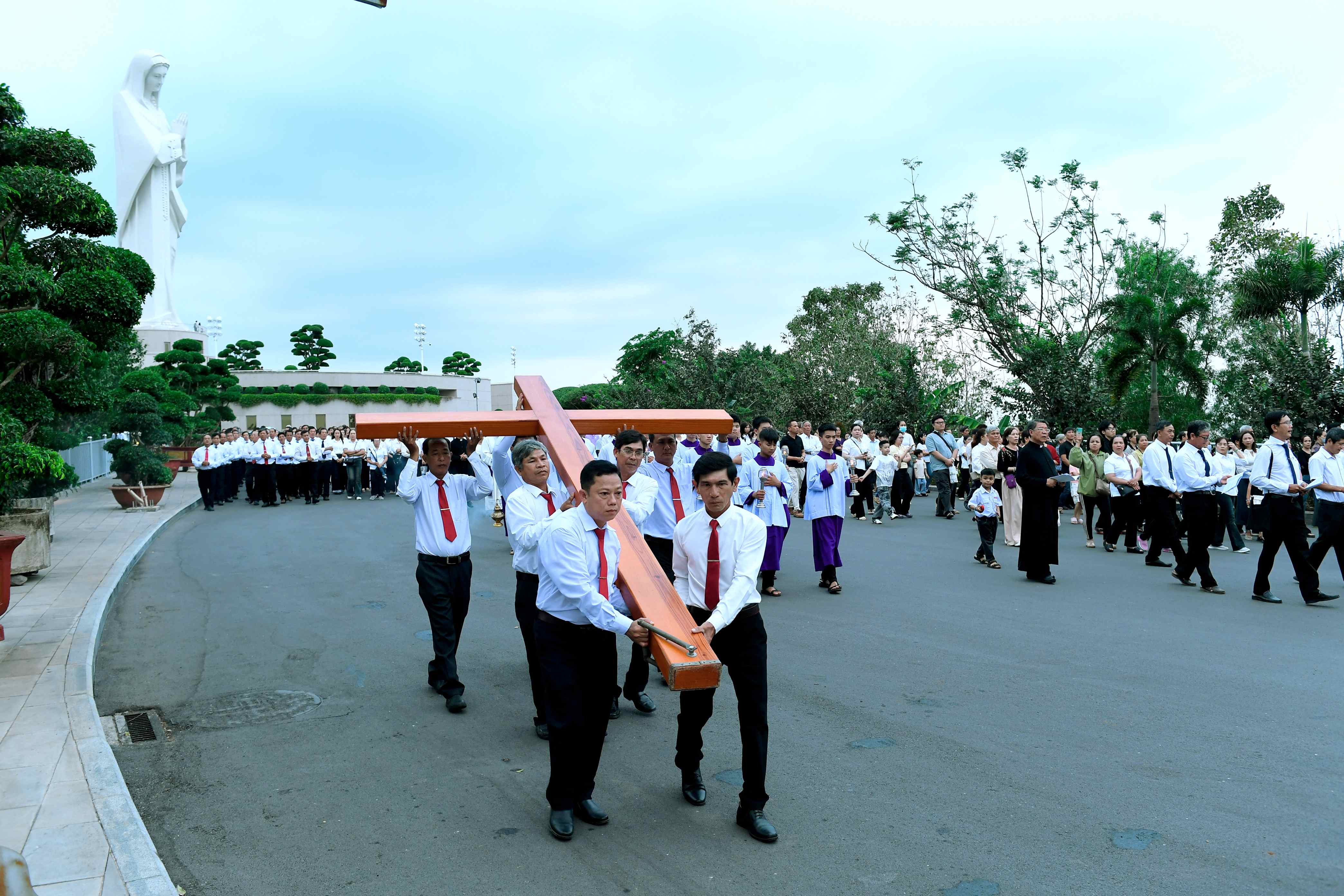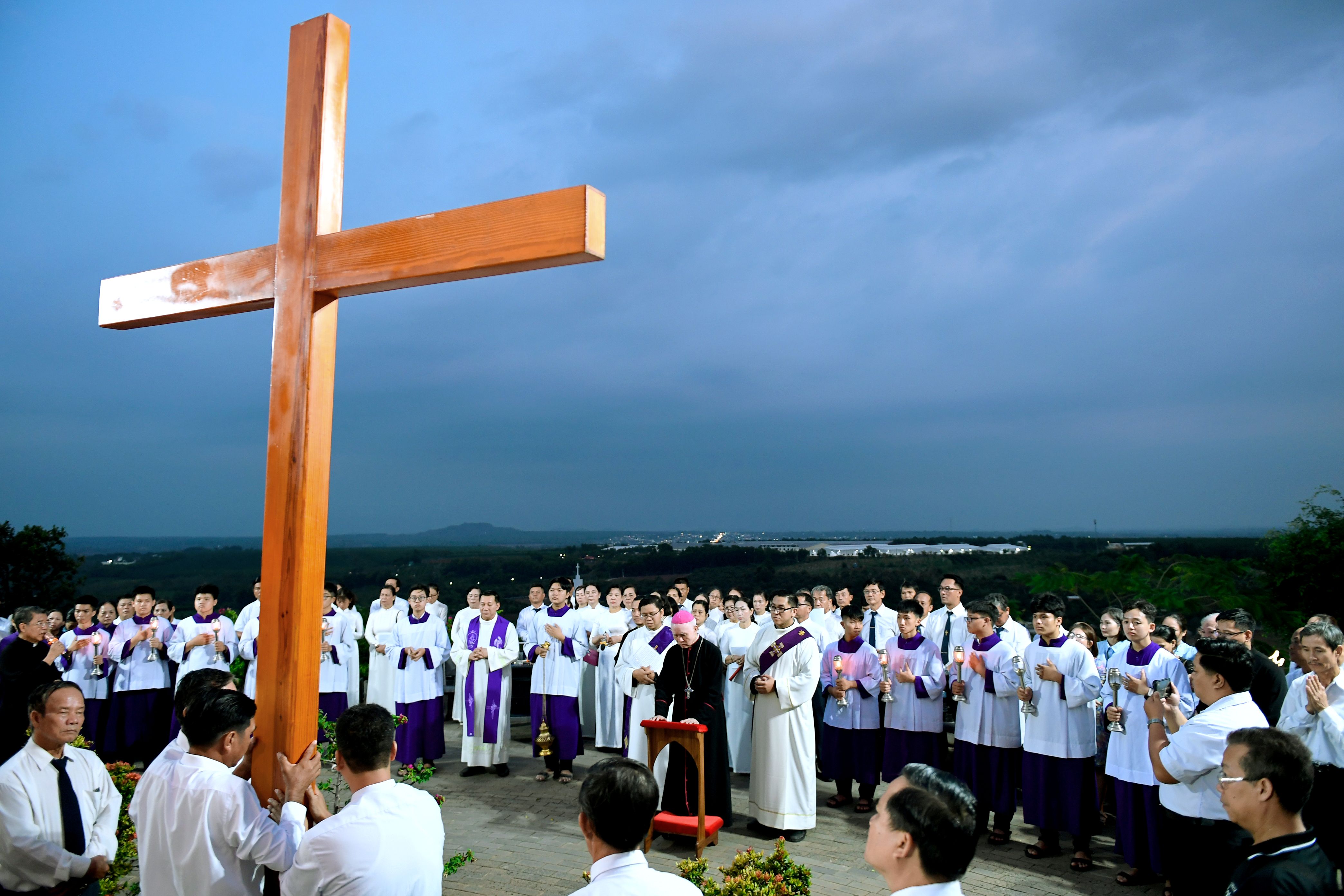 Ngay từ đầu giờ chiều, cộng đoàn đã quy tụ dưới chân Núi Cúi, chuẩn bị tâm hồn bước vào hành trình suy niệm cuộc Thương Khó của Chúa Giêsu Kitô. Từng chặng Đàng Thánh Giá được cử hành cách trang nghiêm, với các bài suy niệm và lời nguyện giúp cộng đoàn chiêm ngắm tình yêu cứu độ của Chúa qua từng biến cố từ khi chịu kết án cho đến khi được mai táng.