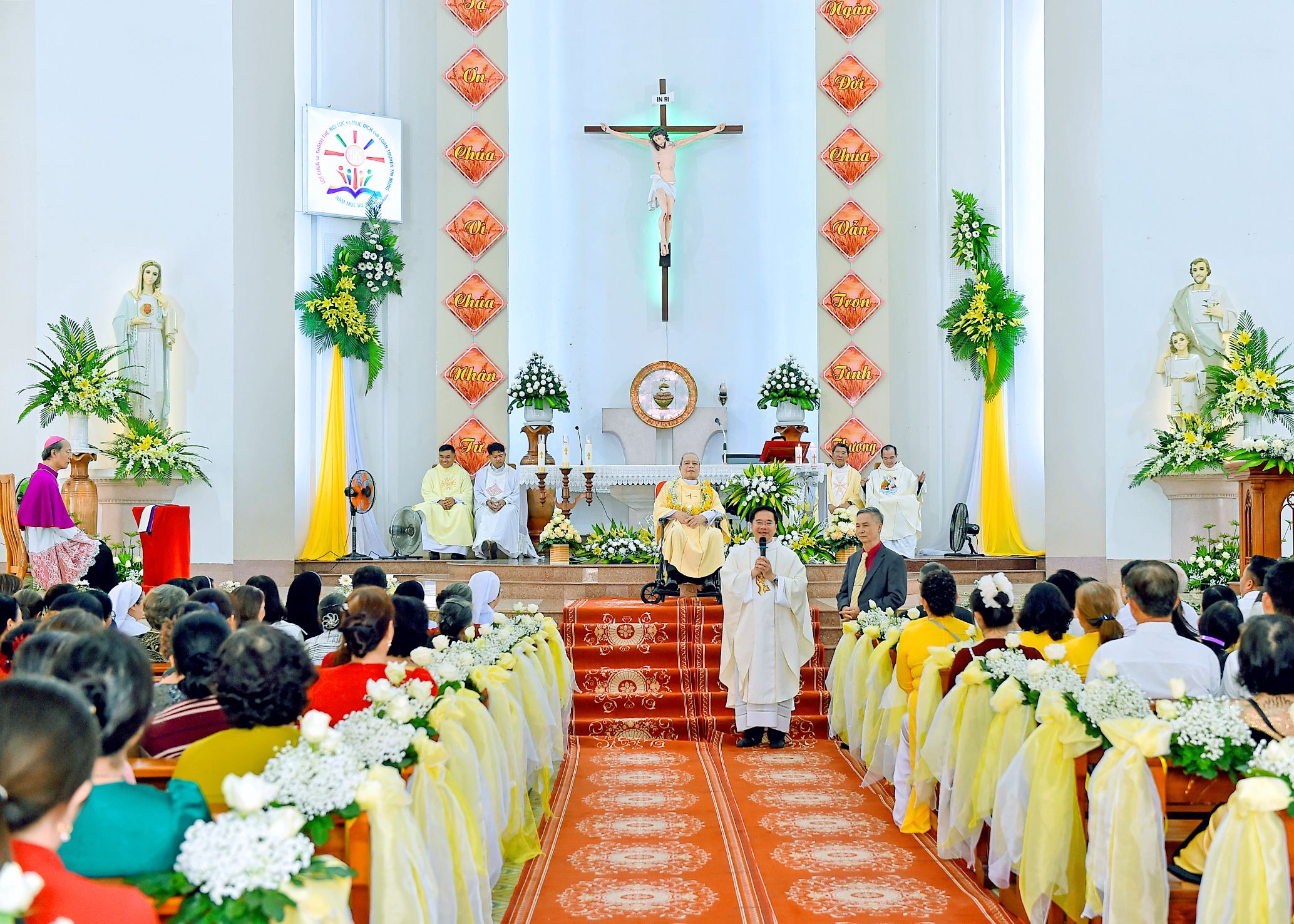 Trước Thánh lễ, cha chánh xứ Hưng Lộc đã thay mặt cộng đoàn chào mừng Đức cha Gioan, quý cha và toàn thể cộng đoàn, đồng thời bày tỏ lòng tri ân sâu xa đối với cha cố Giuse – vị mục tử đã phục vụ giáo xứ Hưng Lộc suốt 12 năm, để lại nhiều công trình và dấu ấn mục vụ quý giá.