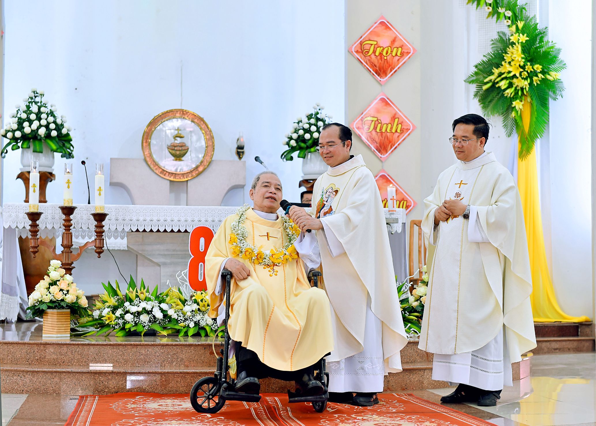 Mở đầu Thánh lễ, cha cố Giuse khiêm tốn ngỏ lời cảm tạ Thiên Chúa về ba hồng ân lớn lao trong cuộc đời, xin cộng đoàn hiệp ý tạ ơn, cầu xin ơn tha thứ cho bản thân và cho các bậc tổ tiên đã qua đời, cũng như xin Chúa trả công cho tất cả những ai đã nâng đỡ ngài trong suốt 80 năm hồng ân.