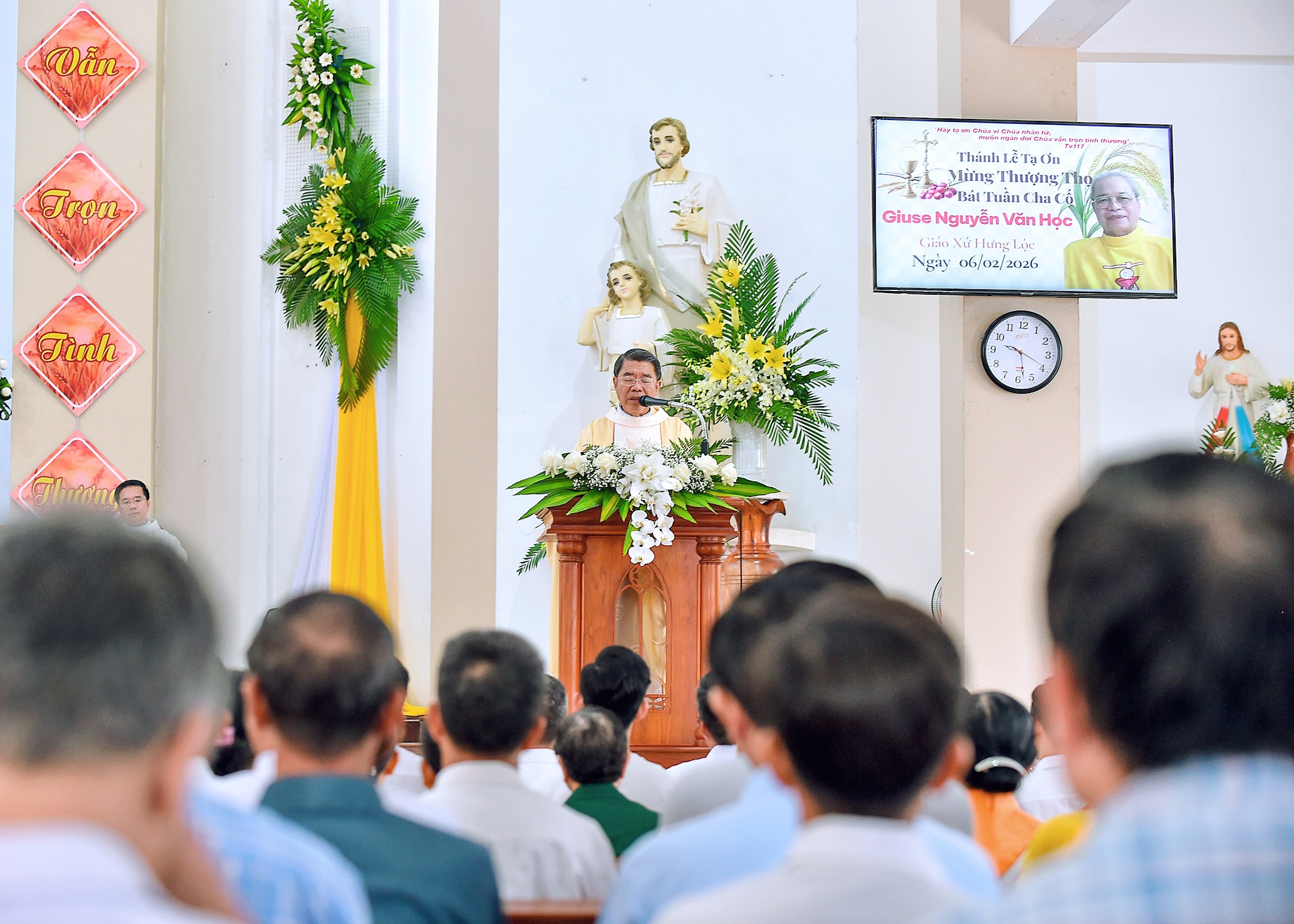 Sáng thứ Sáu, ngày 06.02.2026, tại Giáo xứ Hưng Lộc, cha cố Giuse Nguyễn Văn Học đã long trọng cử hành Thánh lễ tạ ơn Thiên Chúa nhân hồng phúc thượng thọ bát tuần. Thánh lễ có sự hiện diện và đồng tế của Đức cha Gioan Đỗ Văn Ngân, của quý cha Quản hạt, đông đảo quý linh mục, với sự hiệp thông cầu nguyện của quý tu sĩ, gia đình linh tông huyết tộc cha cố và cộng đoàn dân Chúa.
