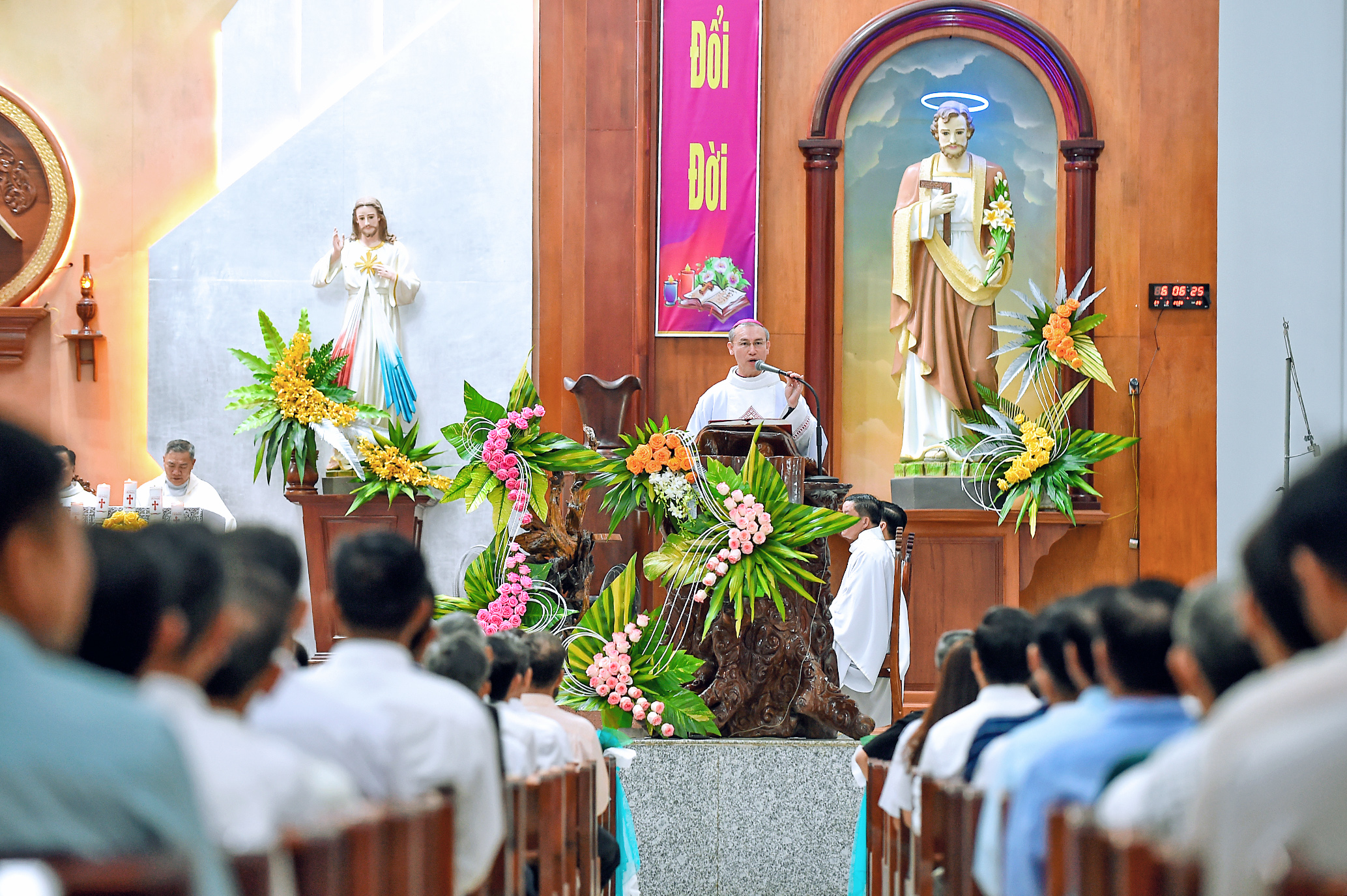 Kết thúc Thánh lễ, vị đại diện giáo xứ đã bày tỏ lòng tri ân sâu sắc đến Đức Cha, quý Cha đồng tế, các tu sĩ và cộng đoàn đã cùng chung chia niềm vui. Đức Cha Đa Minh cũng dành những lời huấn từ khích lệ, tán dương tốc độ phát triển "chóng mặt" của một giáo xứ non trẻ nhưng đã có cơ sở hạ tầng chỉnh chu, từ nhà thờ đến nhà giáo lý và cả khu hội trường rộng rãi.