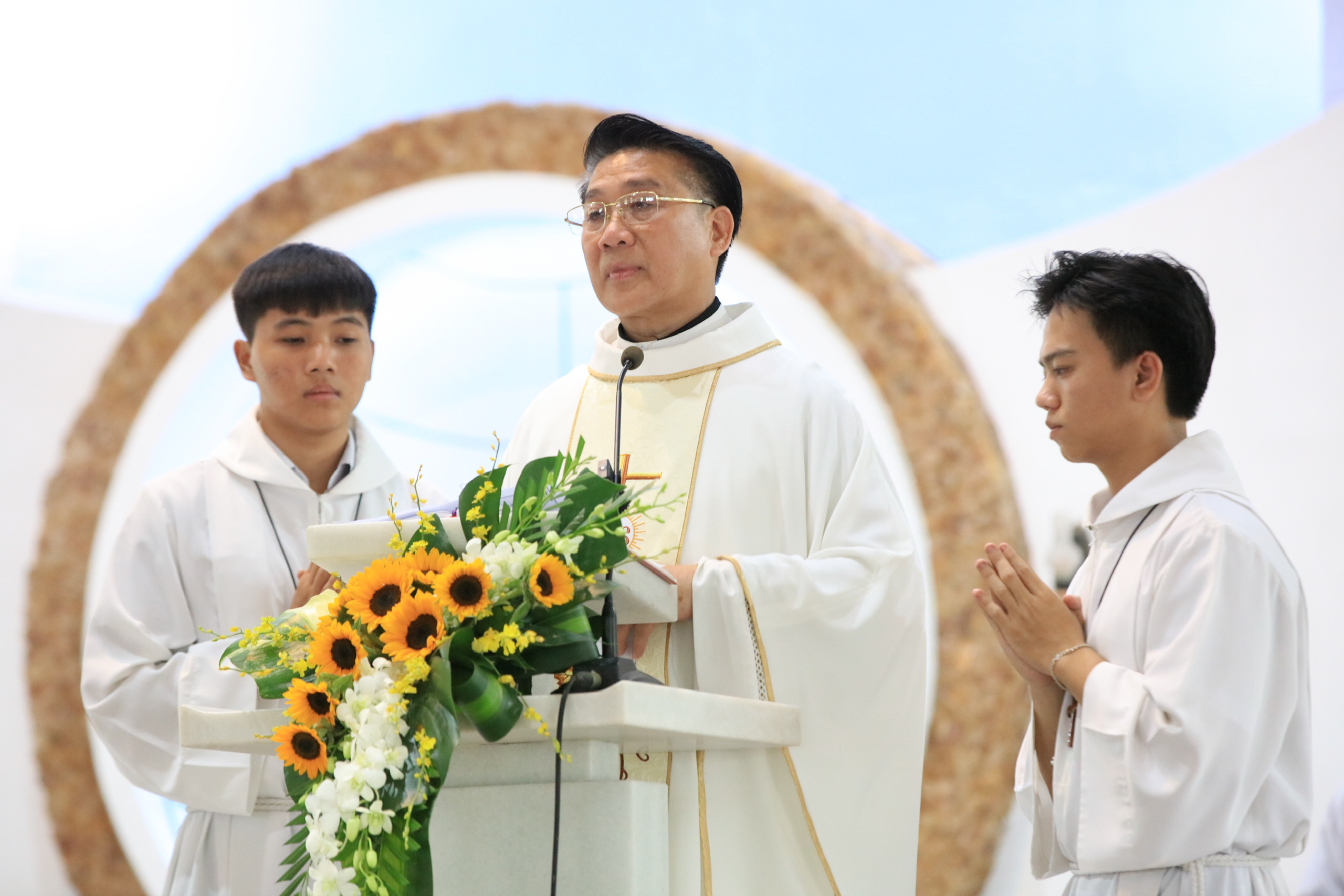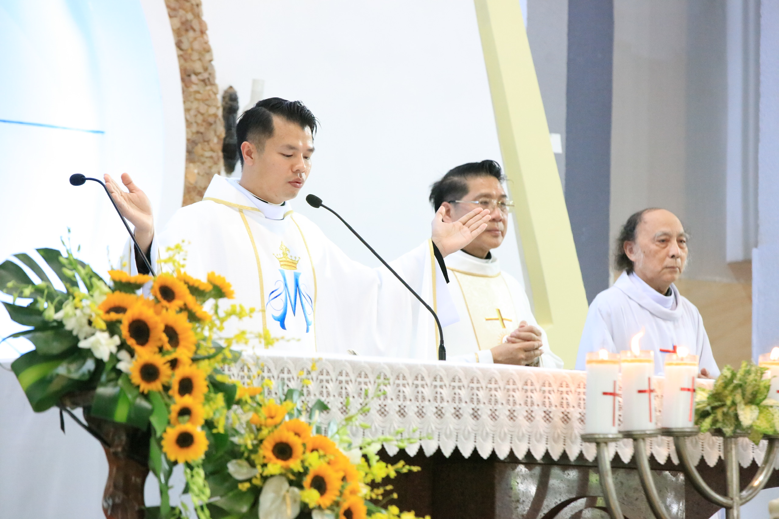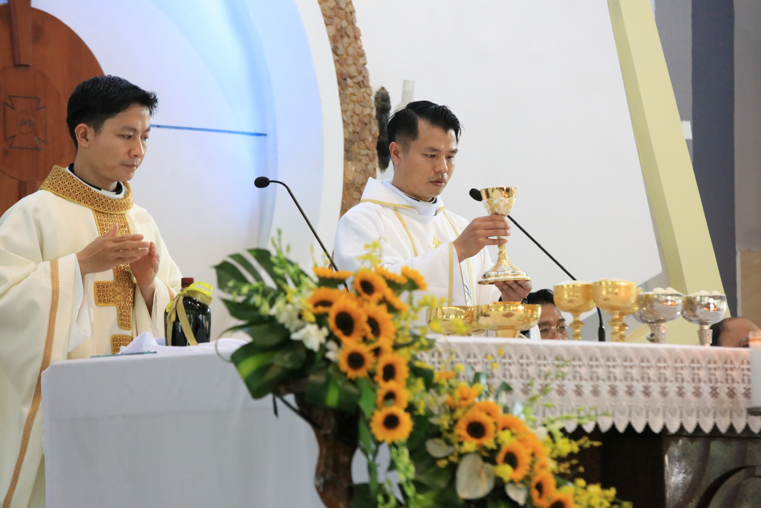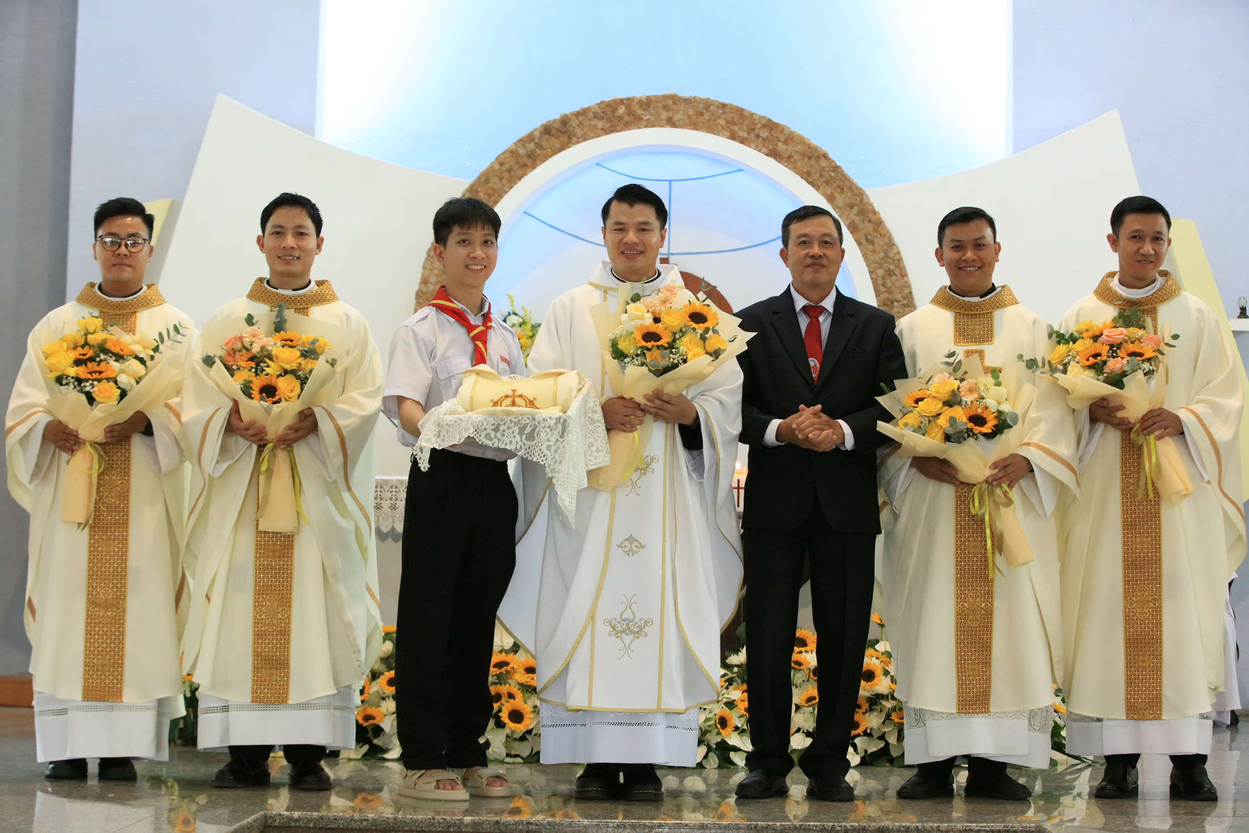 Cùng đồng tế với Cha mới Đaminh, bên cạnh quý Cha mới đồng lớp, có Cha Vinhsơn Nguyễn Mạnh Cường – Quản hạt và Chánh xứ Tân Mai là nghĩa phụ, quý Cha quản hạt, quý Cha linh tông, quý Cha thân hữu, quý tu sĩ nam nữ, gia đình ông bà cố và đông đảo bà con giáo dân của Giáo xứ Sài Quất.