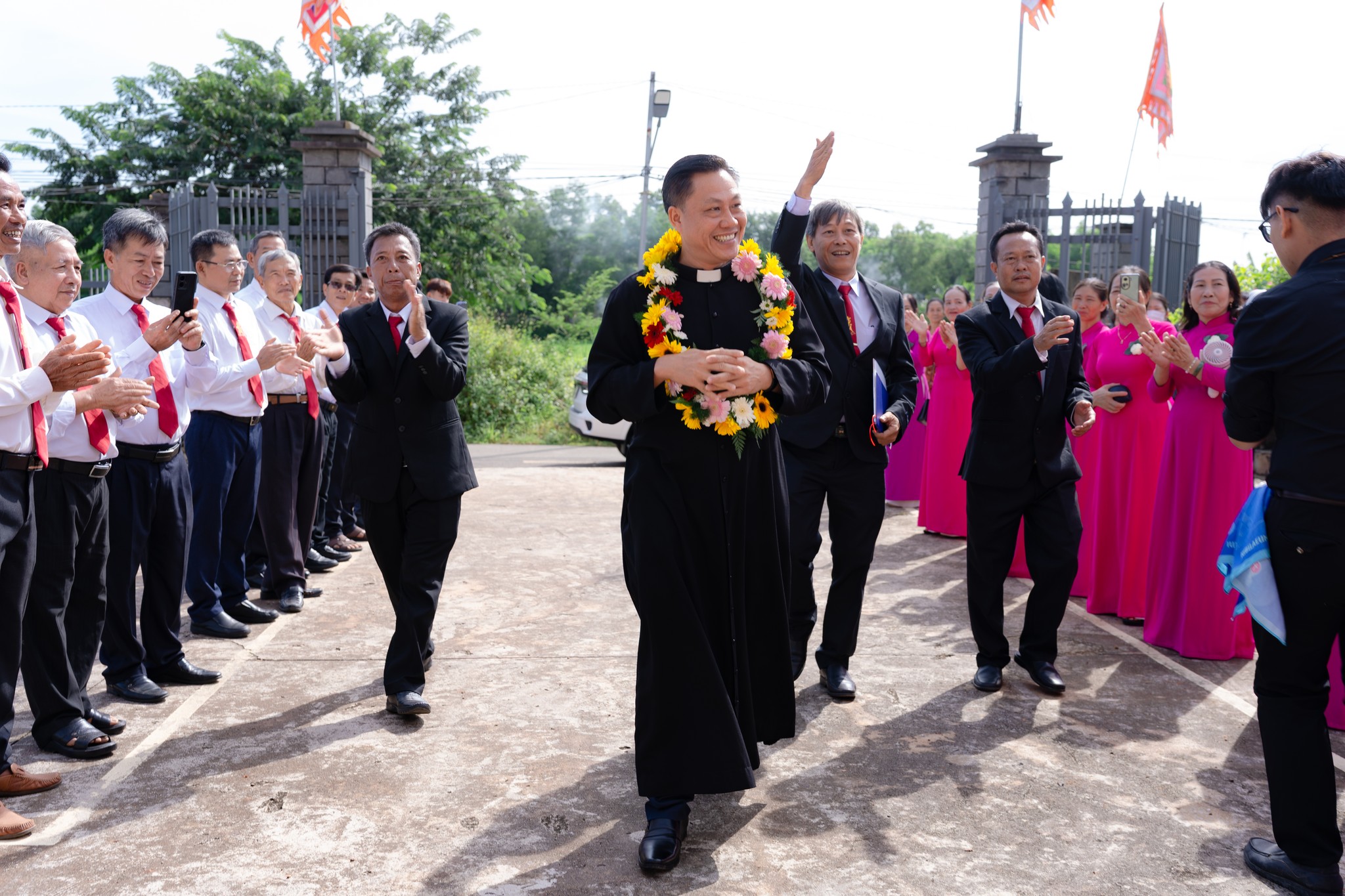 Từ sáng sớm, vào lúc 5g30, đoàn đại diện của giáo xứ đã khởi hành đến Giáo xứ Long Đức (hạt Long Thành) để rước Cha Tân về với cộng đoàn. Trên suốt hành trình, tiếng hát, lời kinh và niềm hân hoan mong đợi hòa quyện trong tâm tình tạ ơn. Khi đoàn xe đưa Cha Thomas về đến khuôn viên Giáo xứ lúc 9g00, tiếng trống, tiếng vỗ tay và những nụ cười rạng rỡ của bà con giáo dân đã làm bừng sáng không gian của niềm vui và hiệp nhất.