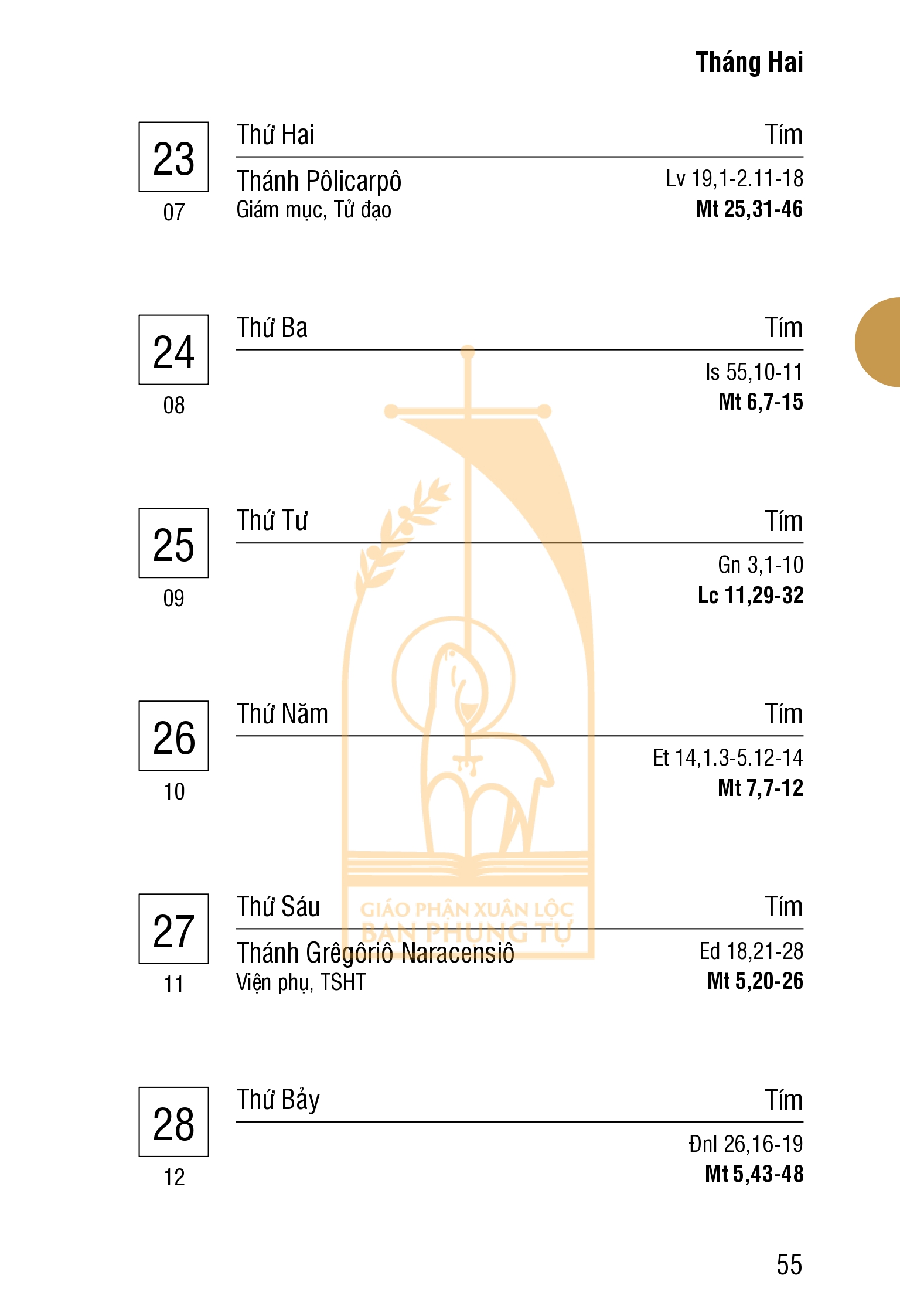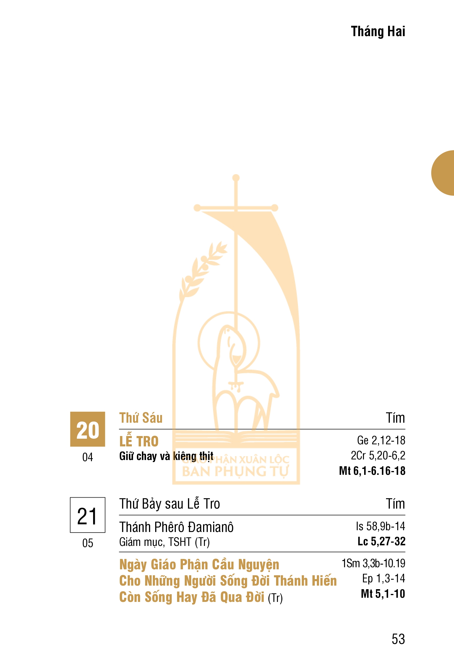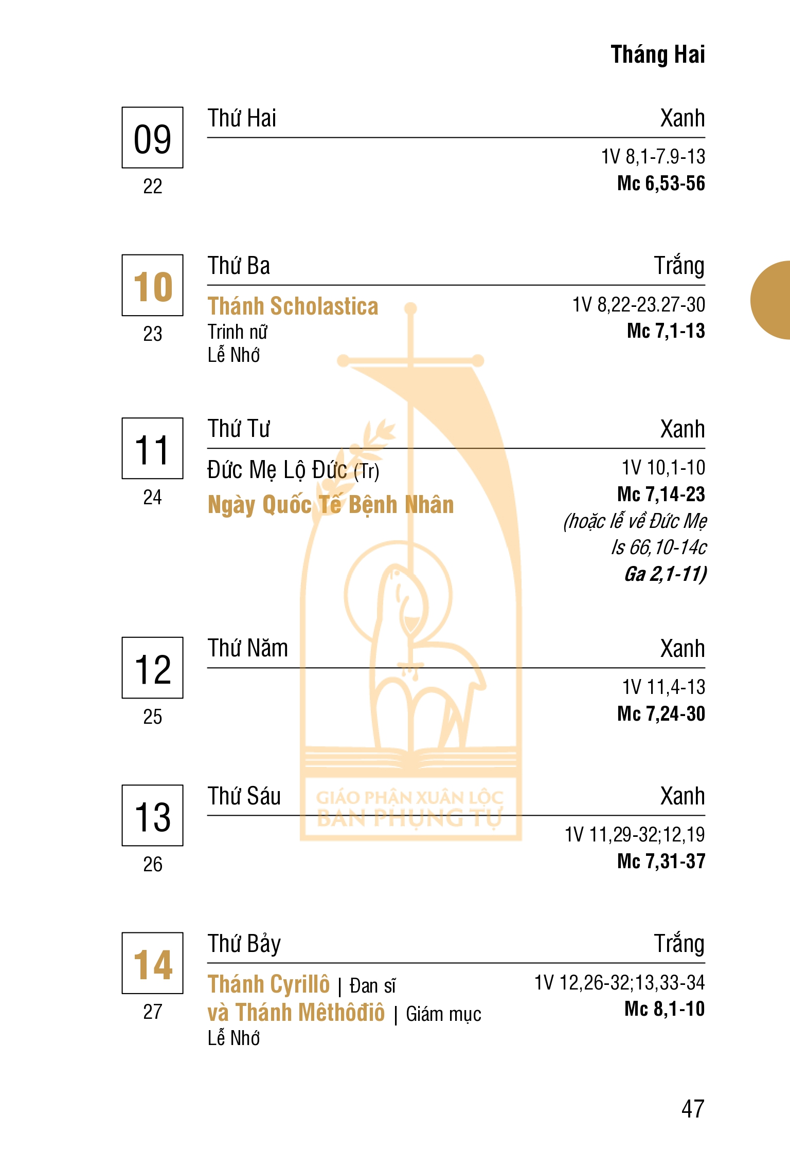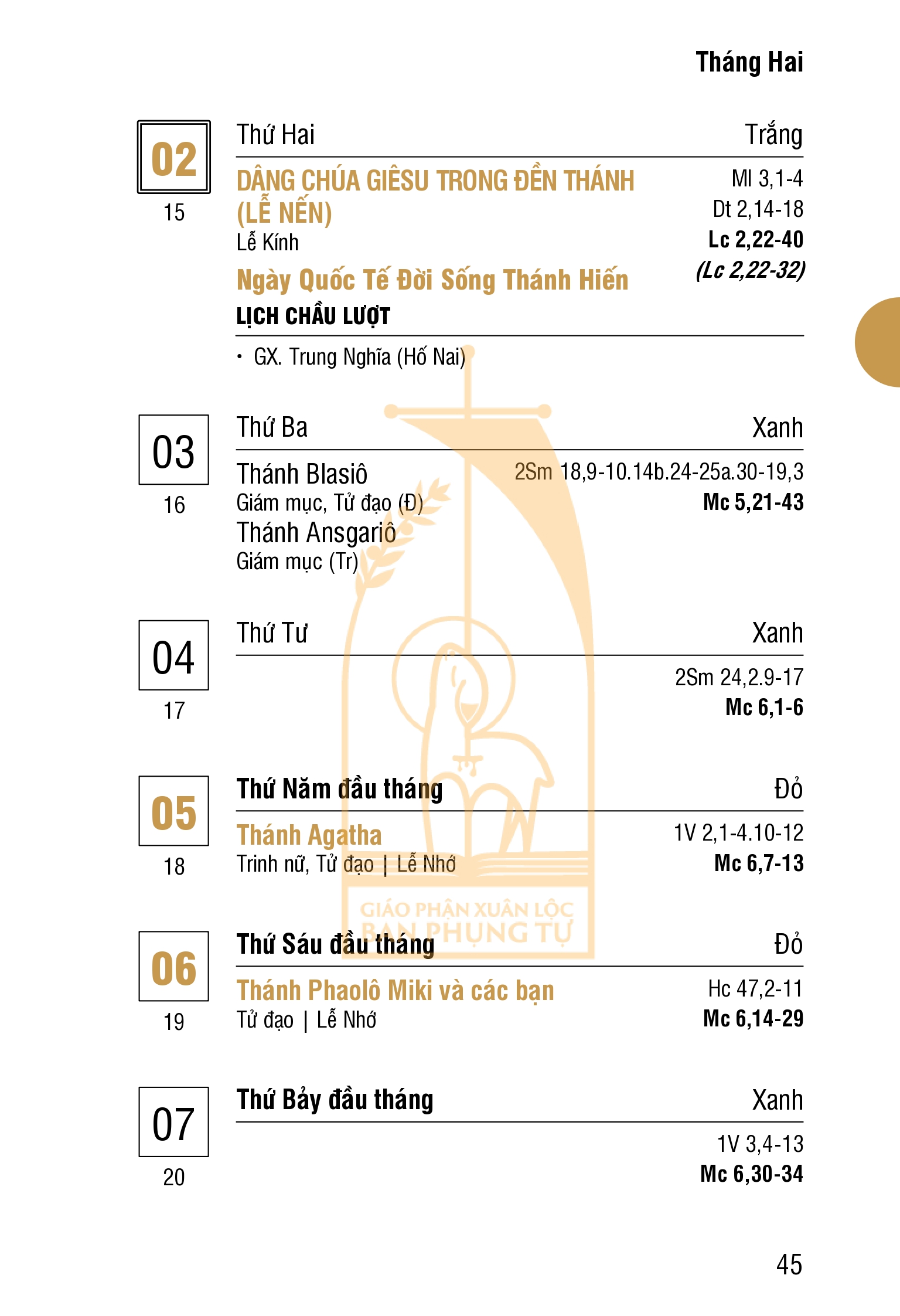 Lịch Công Giáo : THÁNG HAI 2026