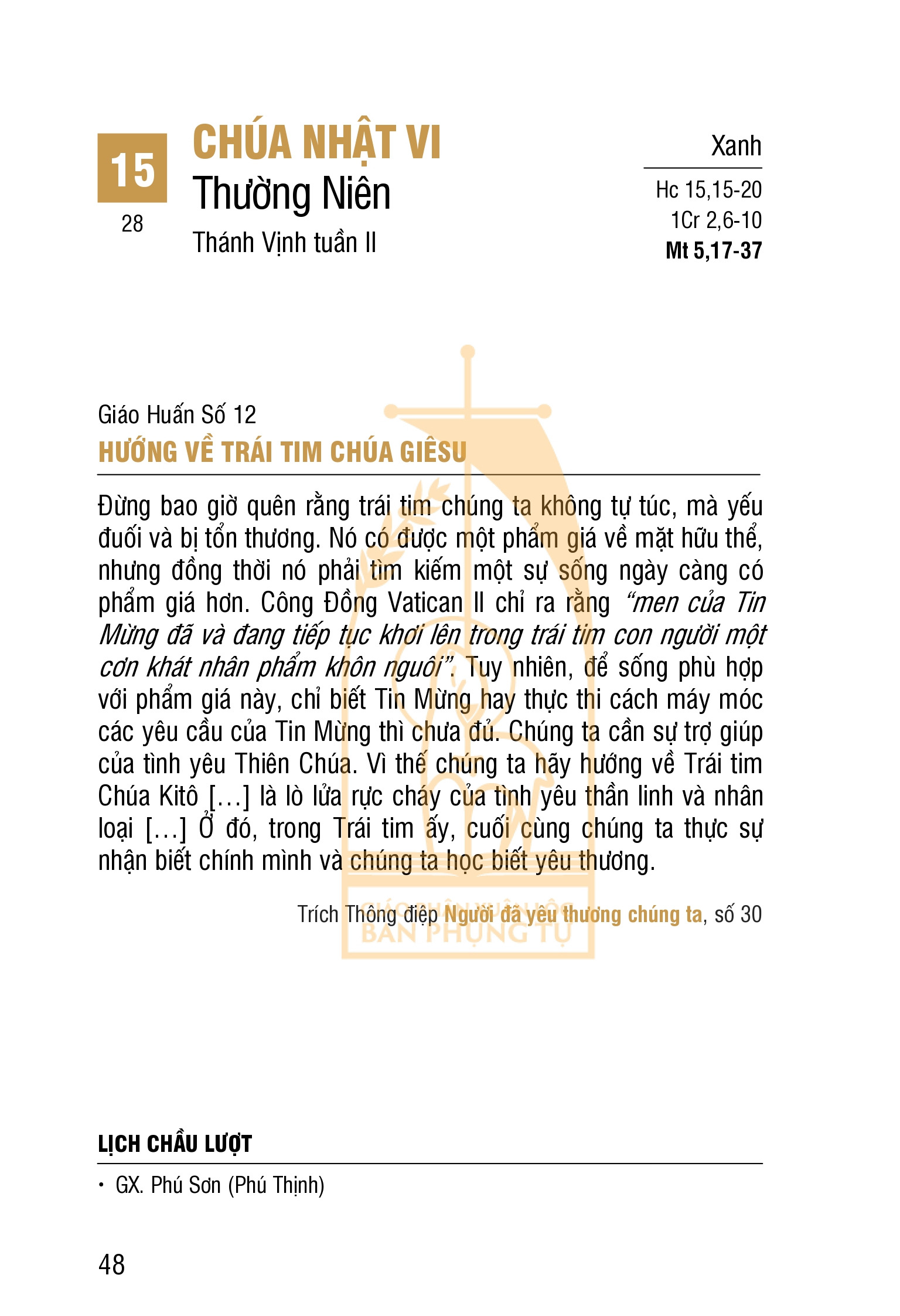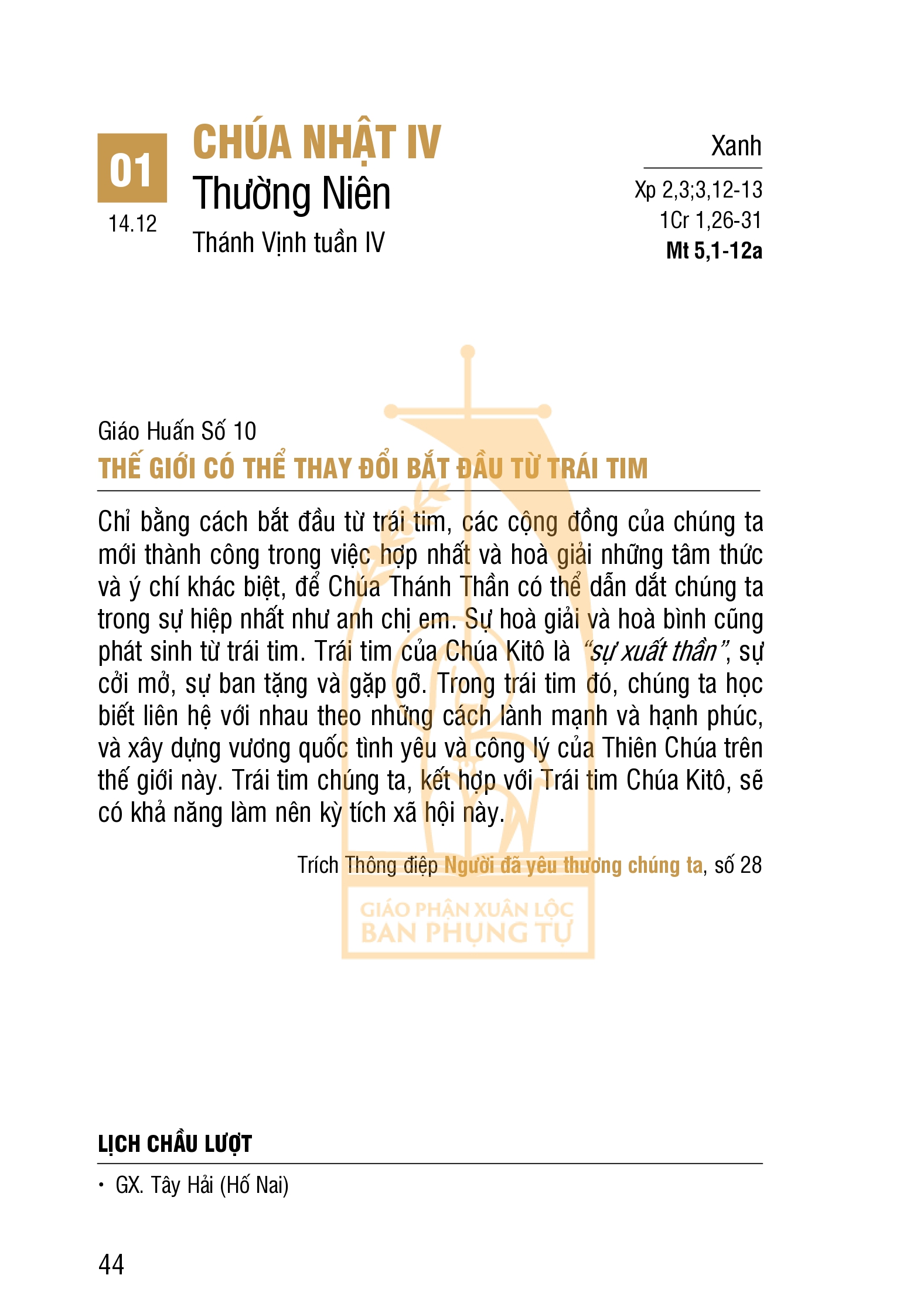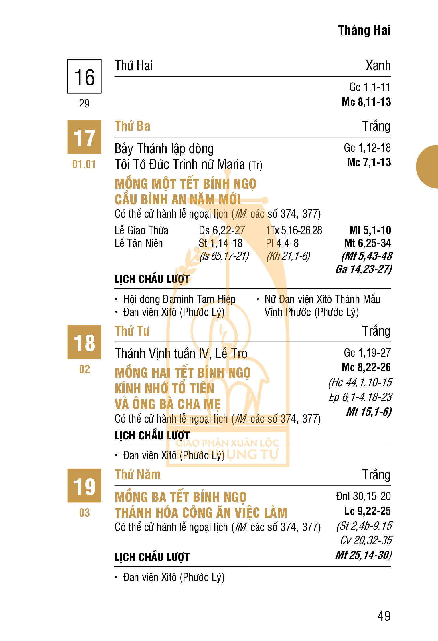 LỊCH PHỤNG VỤ