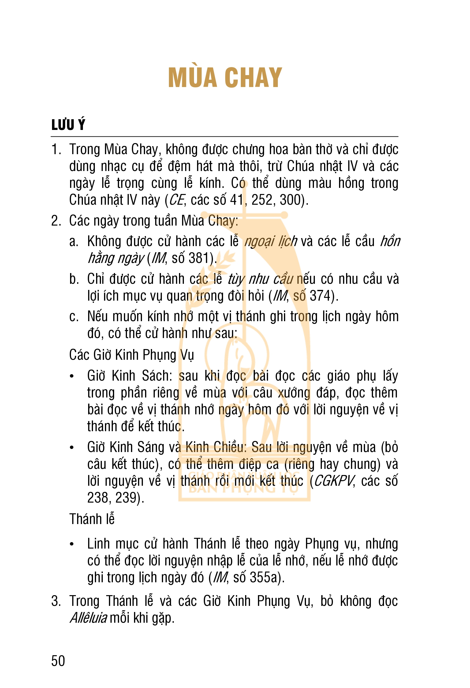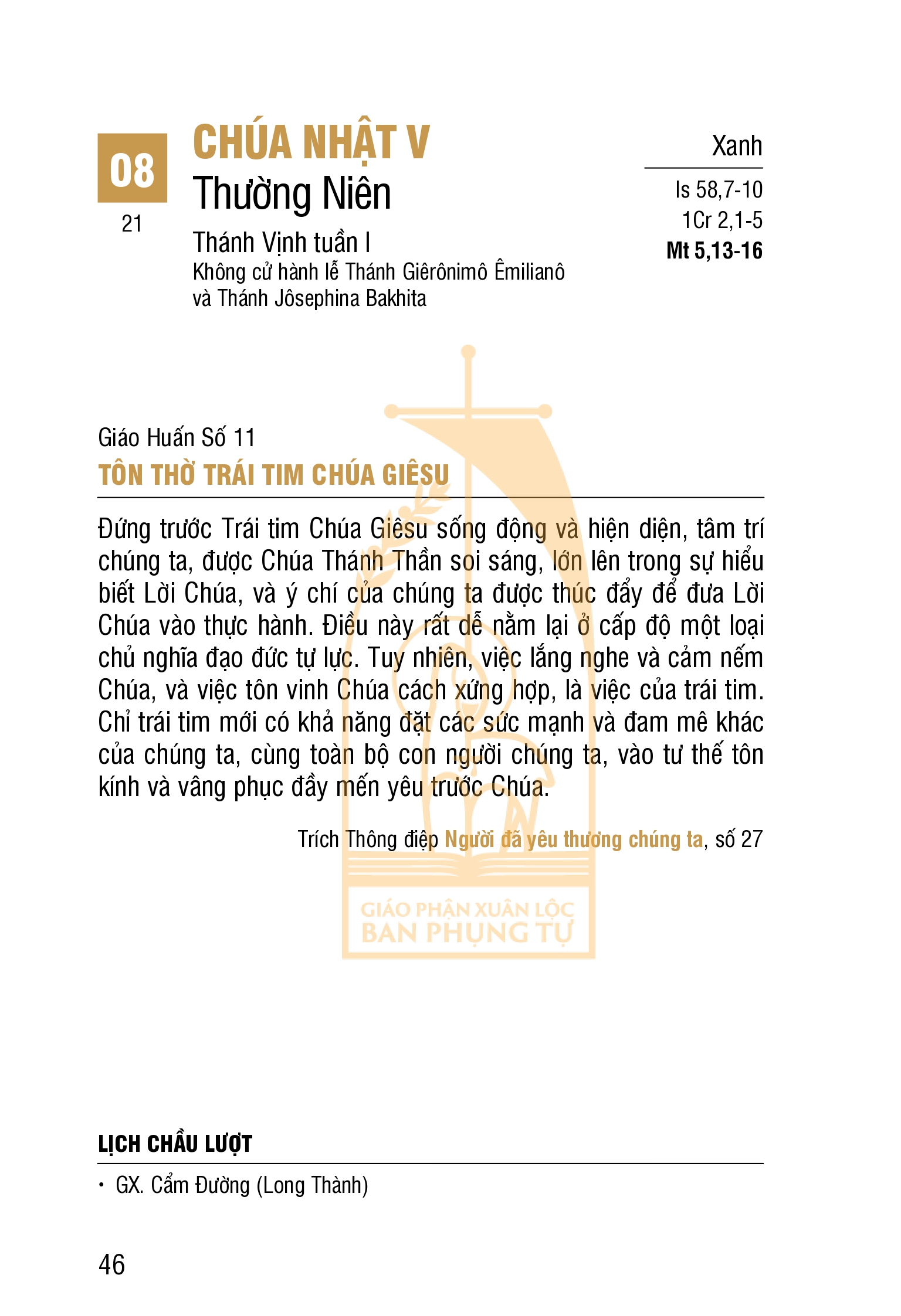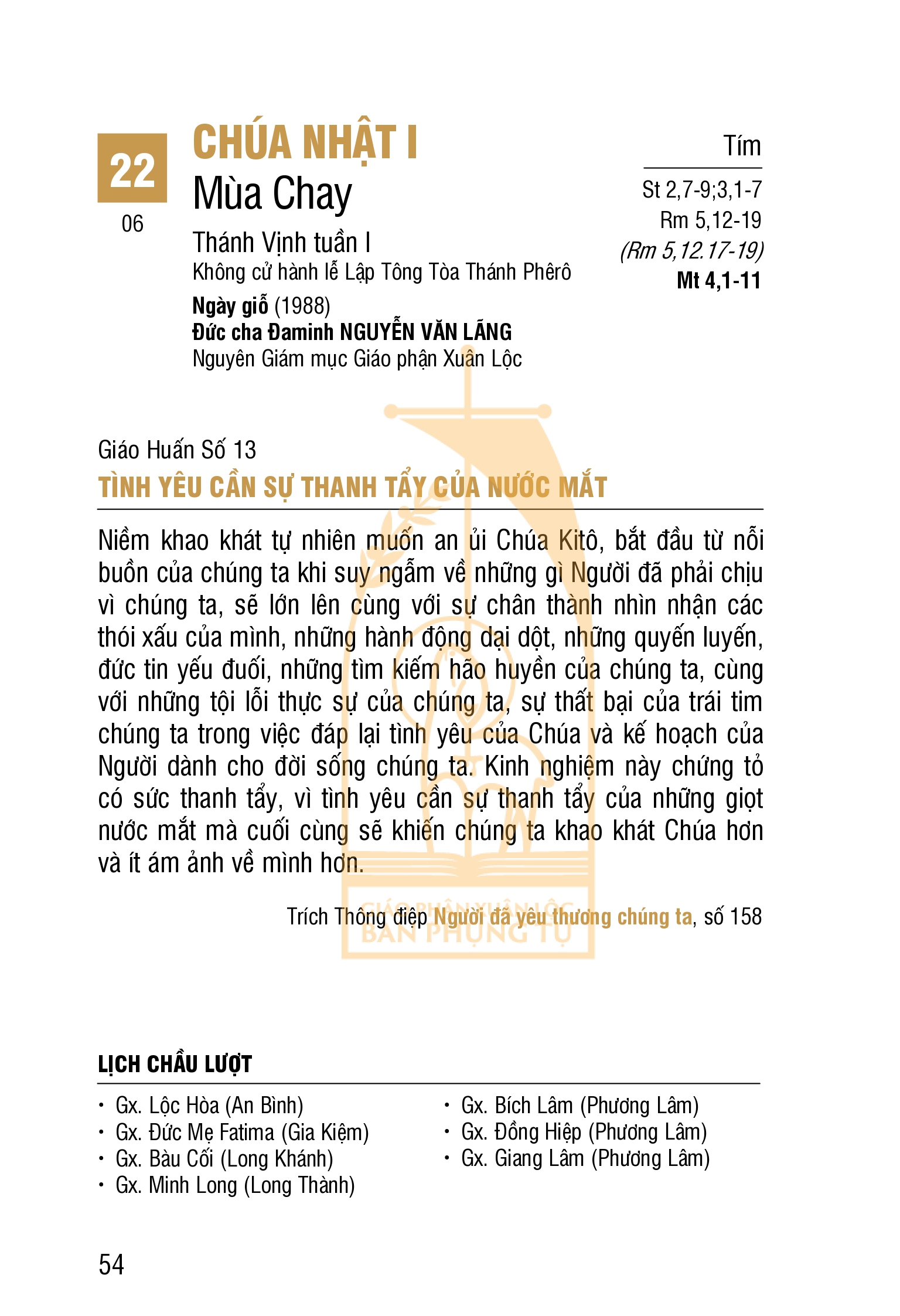 LỊCH PHỤNG VỤ