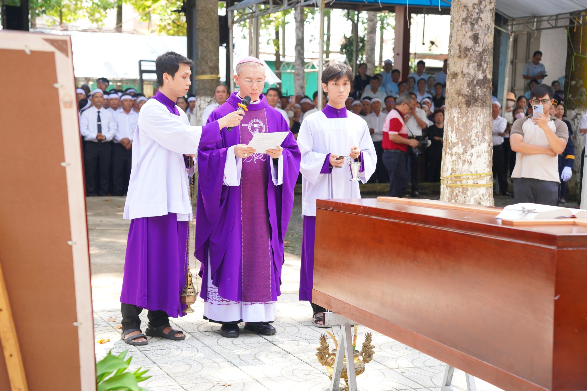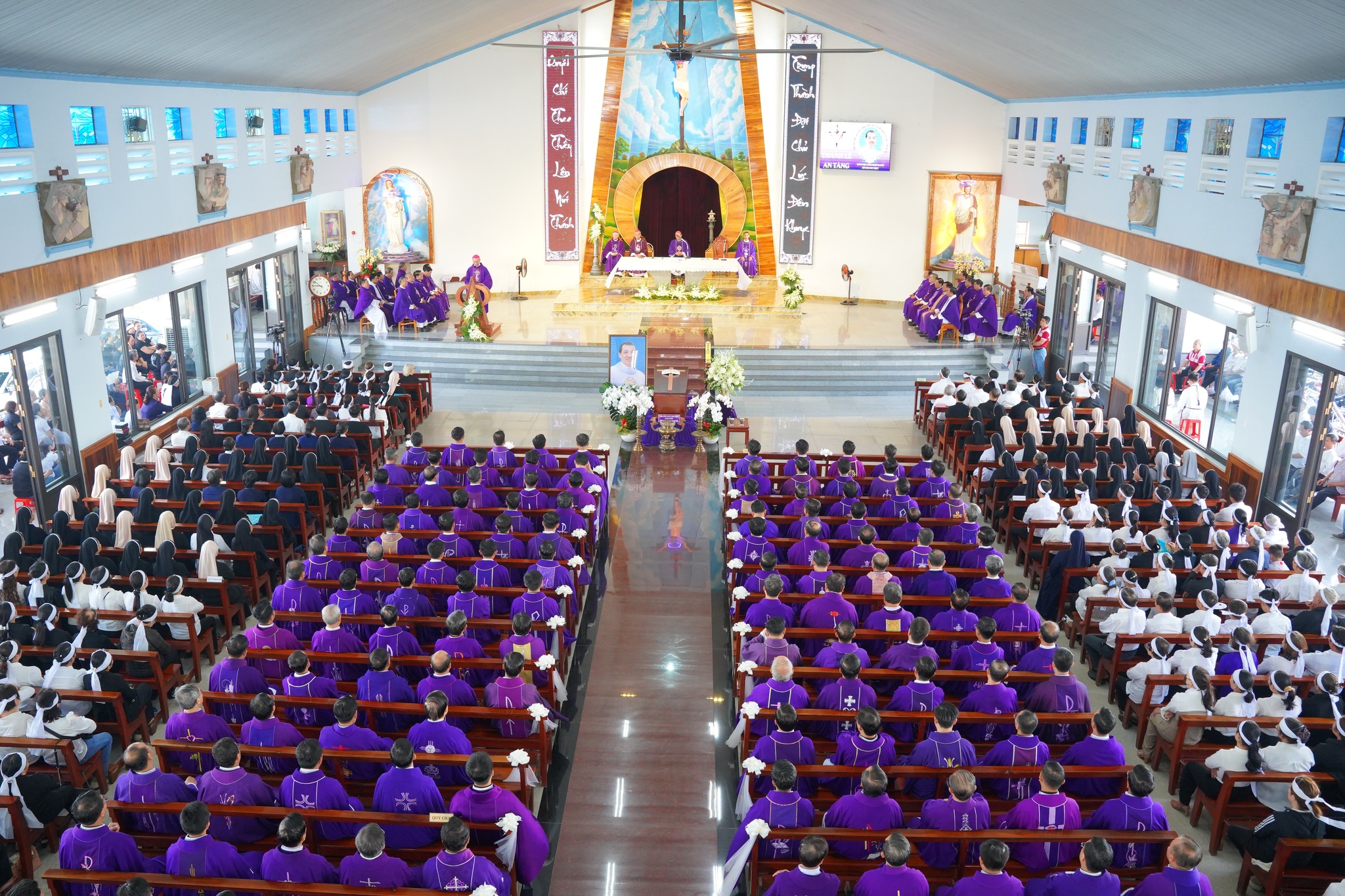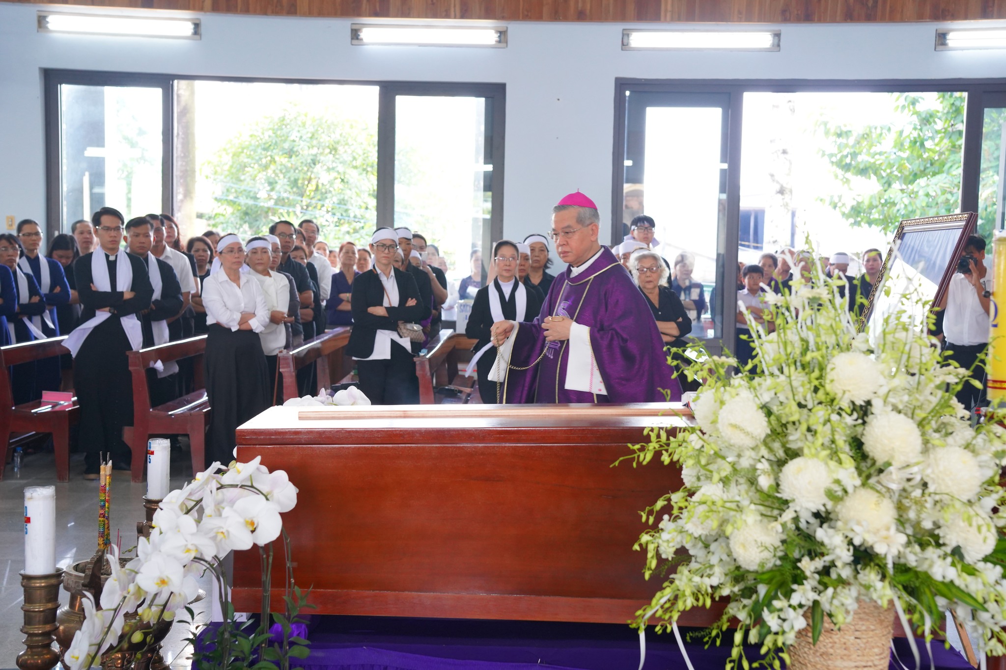 Thánh lễ an táng do Đức Cha Gioan Đỗ Văn Ngân – Giám mục Giáo phận Xuân Lộc – chủ tế, cùng sự hiện diện của Đức Tổng Giám mục Giuse Nguyễn Năng, Đức Cha cố Giuse Đinh Đức Đạo, Đức Cha phụ tá Đaminh Nguyễn Tuấn Anh, Đức Ông Vinh Sơn, cha Tổng Đại diện, quý Cha trong và ngoài Giáo phận, quý tu sĩ, ân nhân, thân nhân và đông đảo cộng đoàn. Trong phần mở đầu, Đức Cha Gioan bày tỏ sự hiệp thông và chia buồn sâu sắc với tang quyến, đồng thời khơi dậy niềm hy vọng Kitô giáo: sự chết không là chấm hết, nhưng là cửa ngõ đưa con người vào sự sống đời đời.