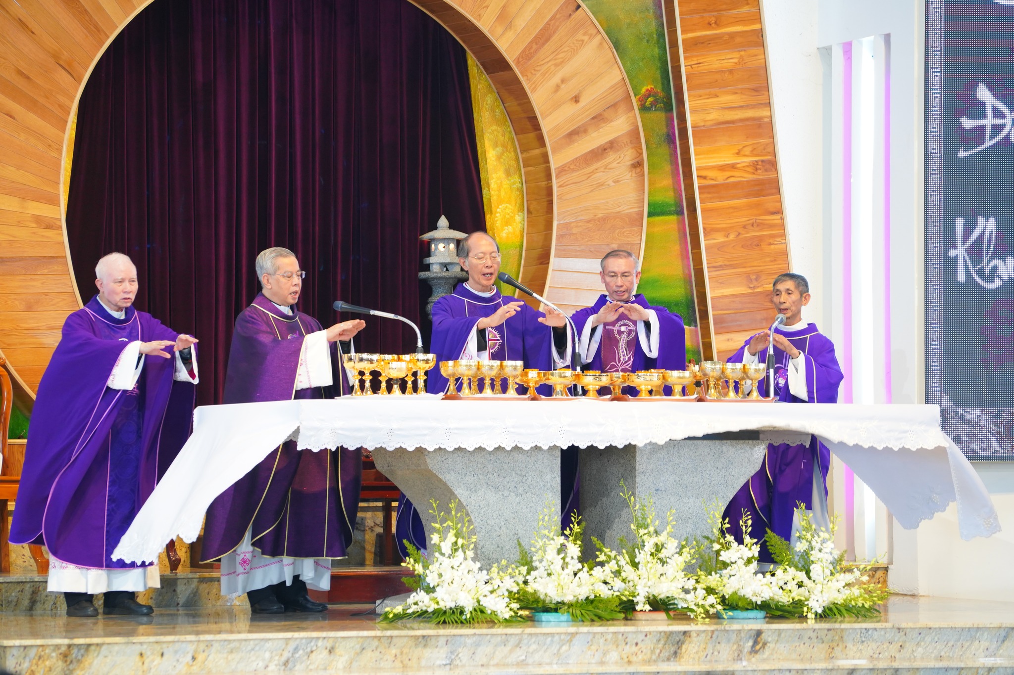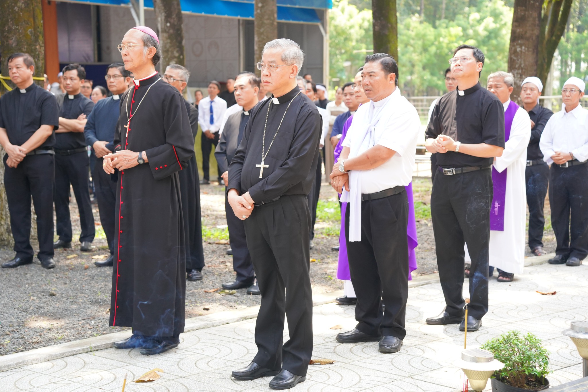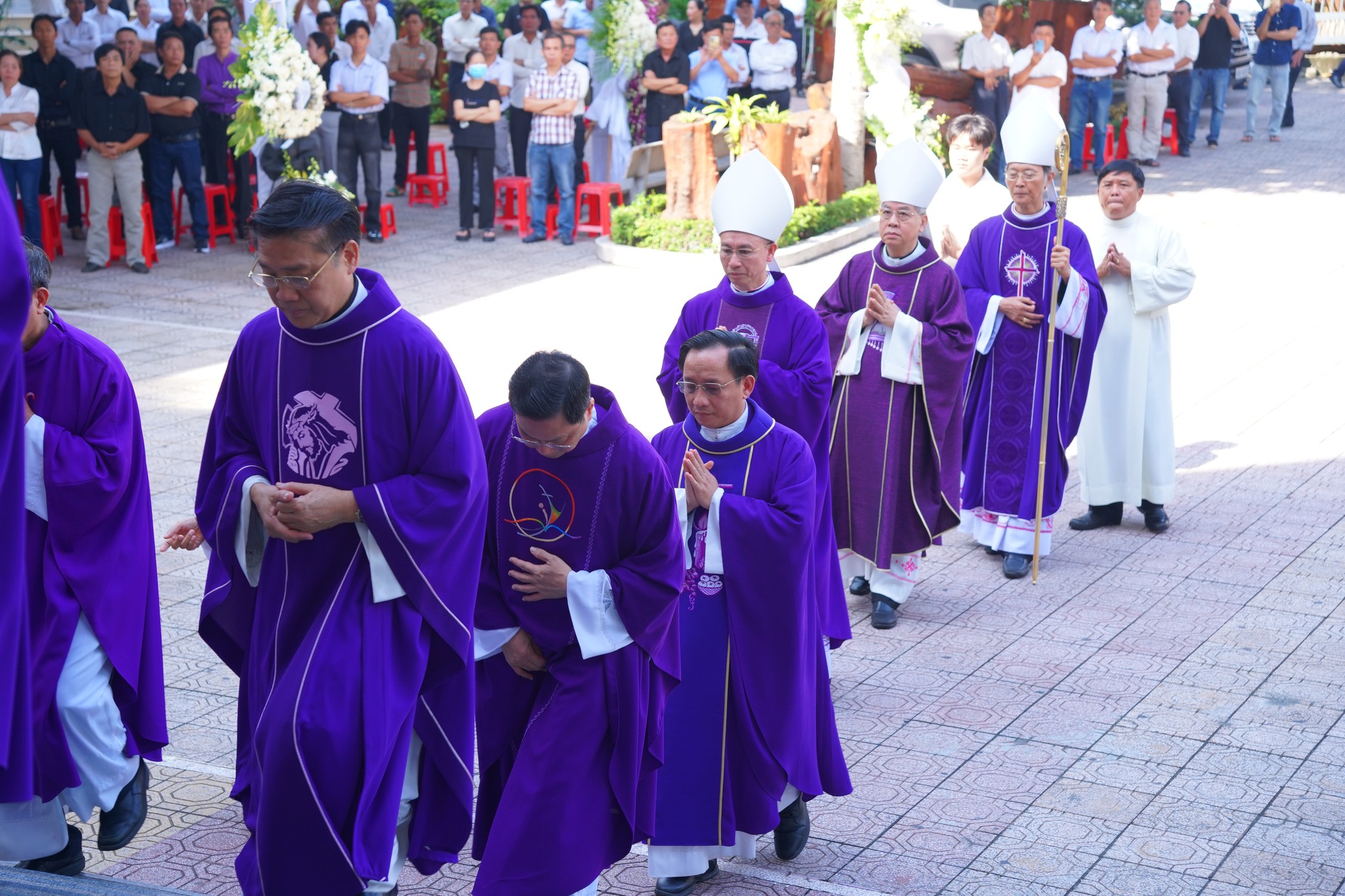 Thánh lễ an táng do Đức Cha Gioan Đỗ Văn Ngân – Giám mục Giáo phận Xuân Lộc – chủ tế, cùng sự hiện diện của Đức Tổng Giám mục Giuse Nguyễn Năng, Đức Cha cố Giuse Đinh Đức Đạo, Đức Cha phụ tá Đaminh Nguyễn Tuấn Anh, Đức Ông Vinh Sơn, cha Tổng Đại diện, quý Cha trong và ngoài Giáo phận, quý tu sĩ, ân nhân, thân nhân và đông đảo cộng đoàn. Trong phần mở đầu, Đức Cha Gioan bày tỏ sự hiệp thông và chia buồn sâu sắc với tang quyến, đồng thời khơi dậy niềm hy vọng Kitô giáo: sự chết không là chấm hết, nhưng là cửa ngõ đưa con người vào sự sống đời đời.