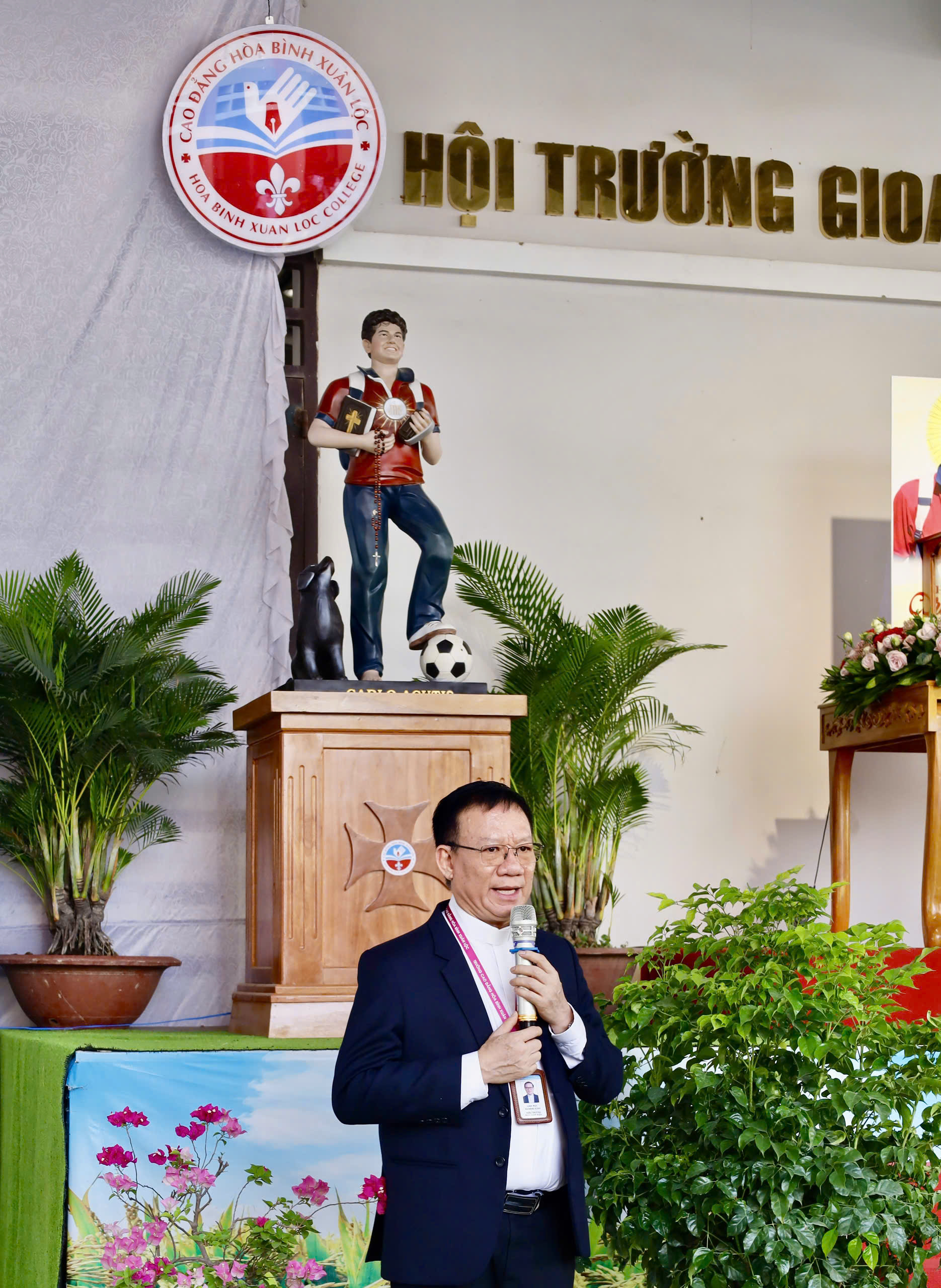 “Con xin phó dâng trường Cao đẳng Hòa Bình Xuân Lộc, cách riêng các học sinh, sinh viên cho thánh Carlo Acutis. Xin thánh nhân bảo vệ và đồng hành với chúng con trong sứ vụ giáo dục cao cả này” (lời cầu nguyện của Cha Hiệu trưởng).