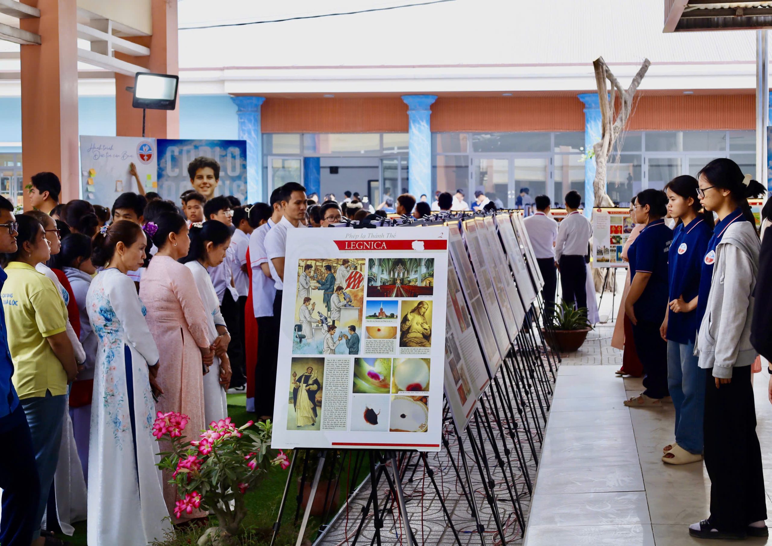 Cha Hiệu trưởng chia sẻ thêm: Triển lãm giới thiệu hàng trăm phép lạ Thánh Thể đã được Giáo Hội chuẩn nhận, xảy ra tại nhiều nơi trên thế giới trong suốt chiều dài lịch sử. Những câu chuyện kỳ diệu ấy được Thánh trẻ Carlo Acutis – một thiếu niên yêu mến Chúa Giêsu Thánh Thể cách đặc biệt dày công tìm hiểu, tổng hợp, và trình bày với tâm thế của người truyền giáo trong ‘thời đại số’.